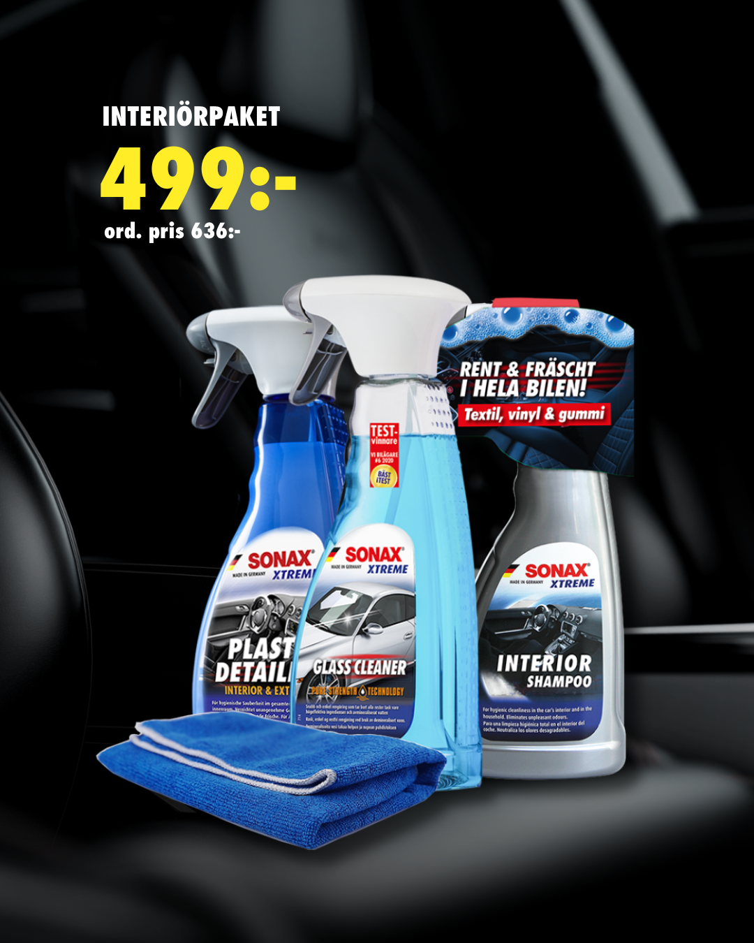 SONAX erbjuder ett brett sortiment av bilvårdsprodukter för att hålla bilens interiör och glas i toppskick. Samtliga produkter är utformade för att rengöra, skydda och fräscha upp olika ytor i bilens inre, inklusive säten, mattor, plast, läder, och glas. De är även skonsamma mot materialen i bilens inredning. Med SONAX interiör- och glasprodukter kan du som bilägare enkelt underhålla en ren, fräsch och hälsosam miljö i sitt fordon.