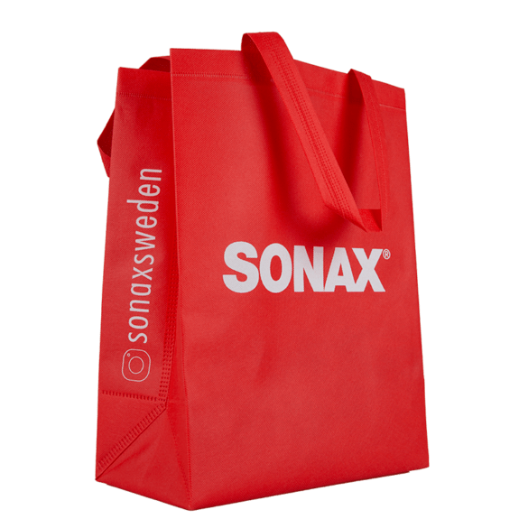 Förvara dina bilvårdsprodukter i en snygg och tålig nonwoven bag med SONAX logo.