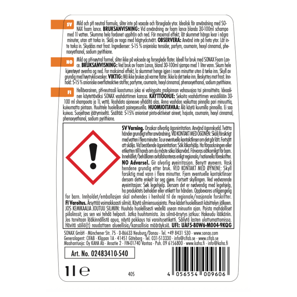 - Lätt att använda: Idealisk för användning med SONAX Foam Lance för en snabb och effektiv förtvätt.