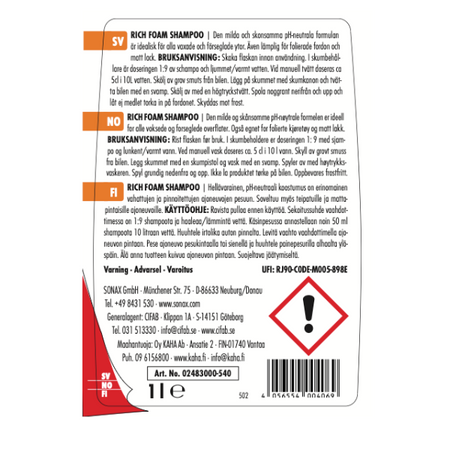 SONAX XTREME Rich Foam Shampoo är det perfekta valet för bilägare som vill ge sin bil en grundlig och lyxig tvätt, med ett kraftigt skum som gör tvättprocessen snabbare och mer effektiv.